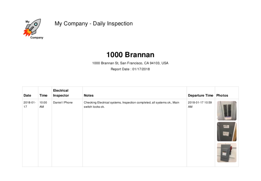 The PDF will have all the optional information you selected, plus your company logo, and will look something like this:
